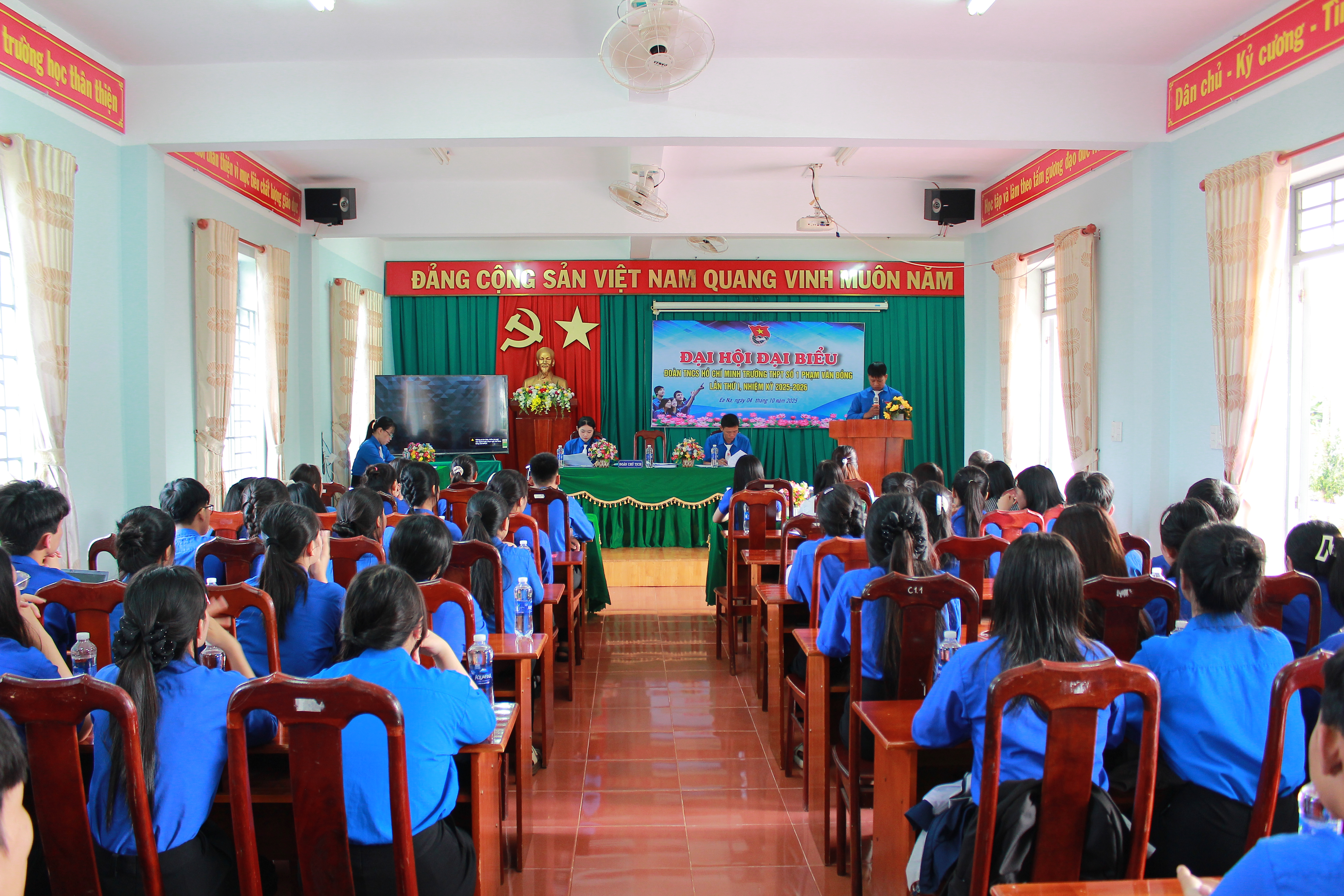 Đại hội là diễn đàn của trí tuệ, dân chủ và đoàn kết – nơi tuổi trẻ trường THPT Số 1 Phạm Văn Đồng cùng nhìn lại hành trình đã qua với những thành tựu đáng tự hào, thẳng thắn chỉ ra hạn chế, từ đó xác định mục tiêu, phương hướng và giải pháp cho chặng đường mới, viết tiếp những trang thanh xuân rực rỡ bằng khát vọng, niềm tin và tinh thần cống hiến.